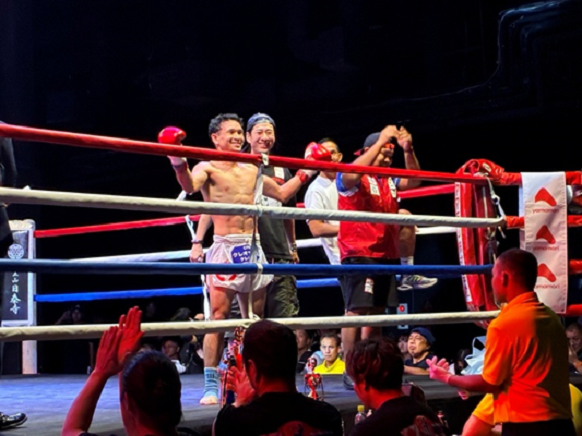 2R目も接戦の攻防中での一瞬の出来事でした、コッチャサーン選手の横肘がはいり見事2試合連続のKO勝利です!!!